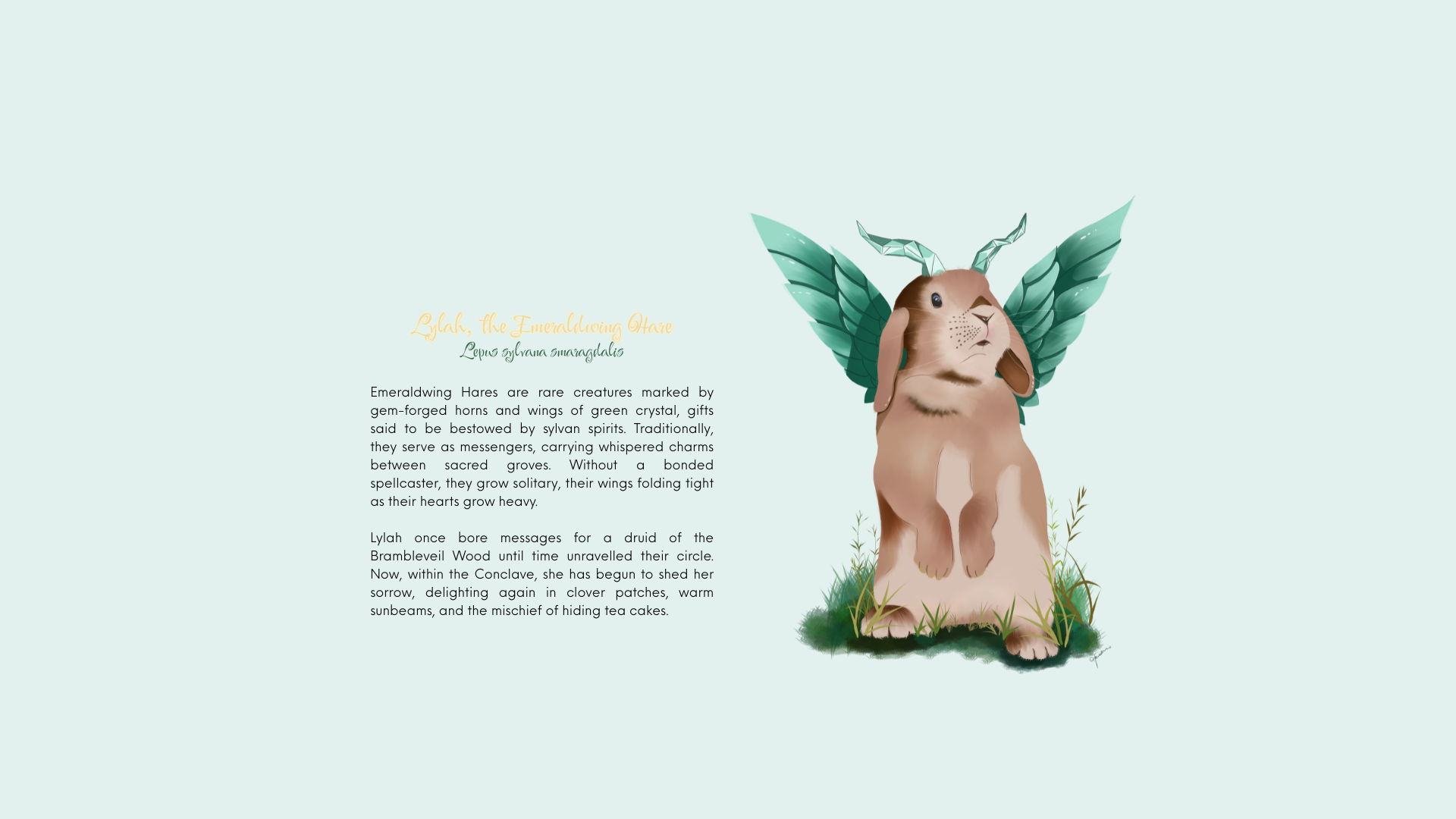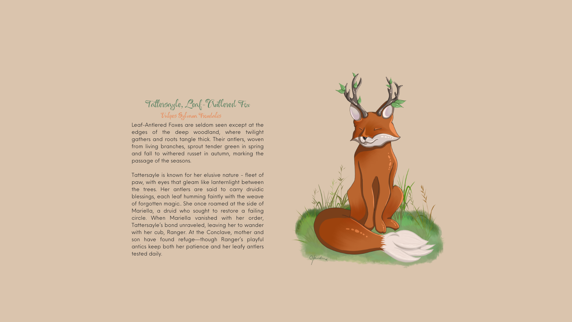 One by one, the familiars stir—twitching whiskers, fluttering wings, soft tails curling from around tiny paws. A bunny with starlit fur stretches her ears toward the warmth. A fox with a leaf strewn antler crown yawns wide, the glow of long-forgotten spells flickering faintly in her breath. A stoat rolls sleepily from a bed of clover, still tangled in dreams of spellcasters past.