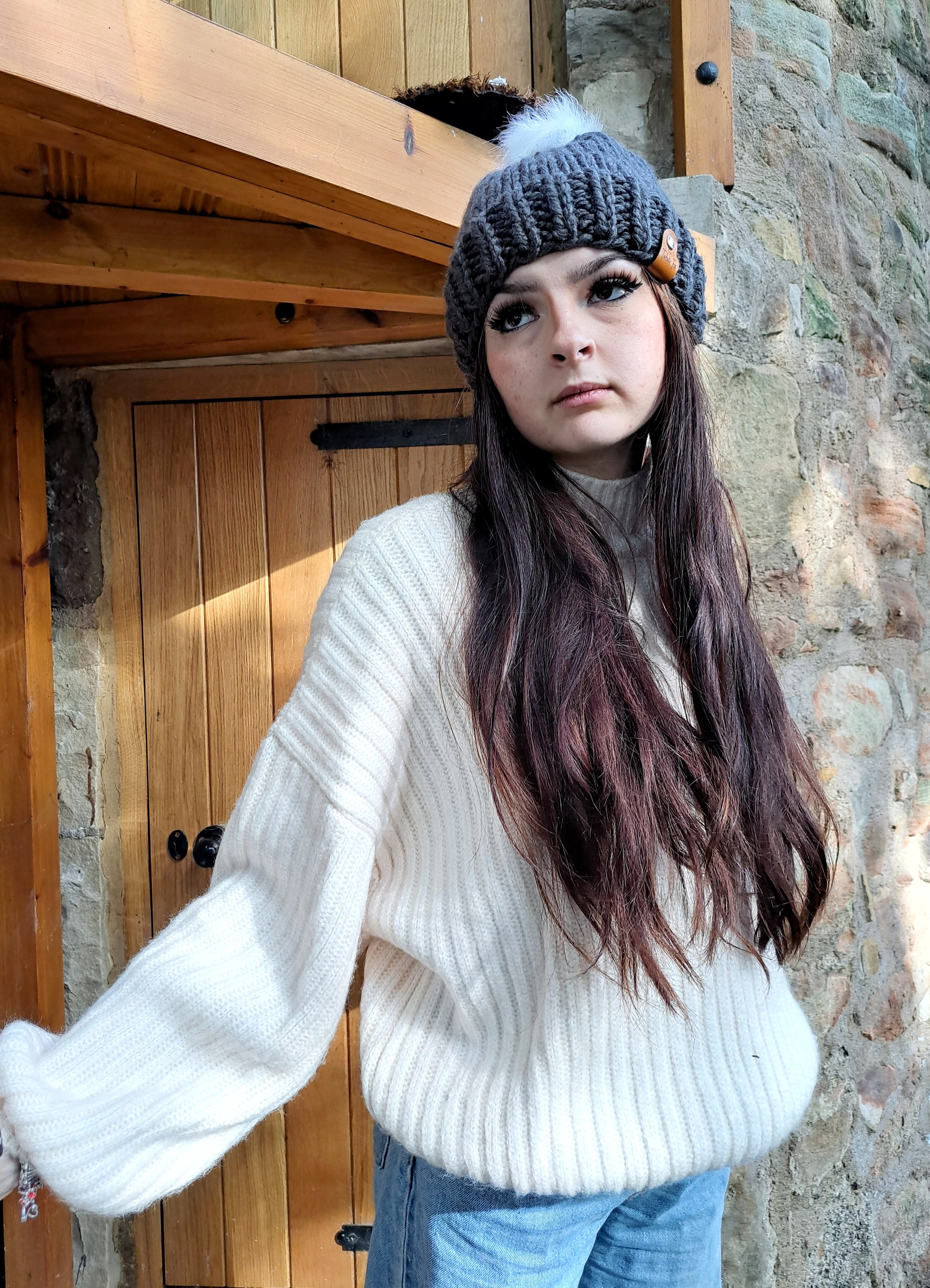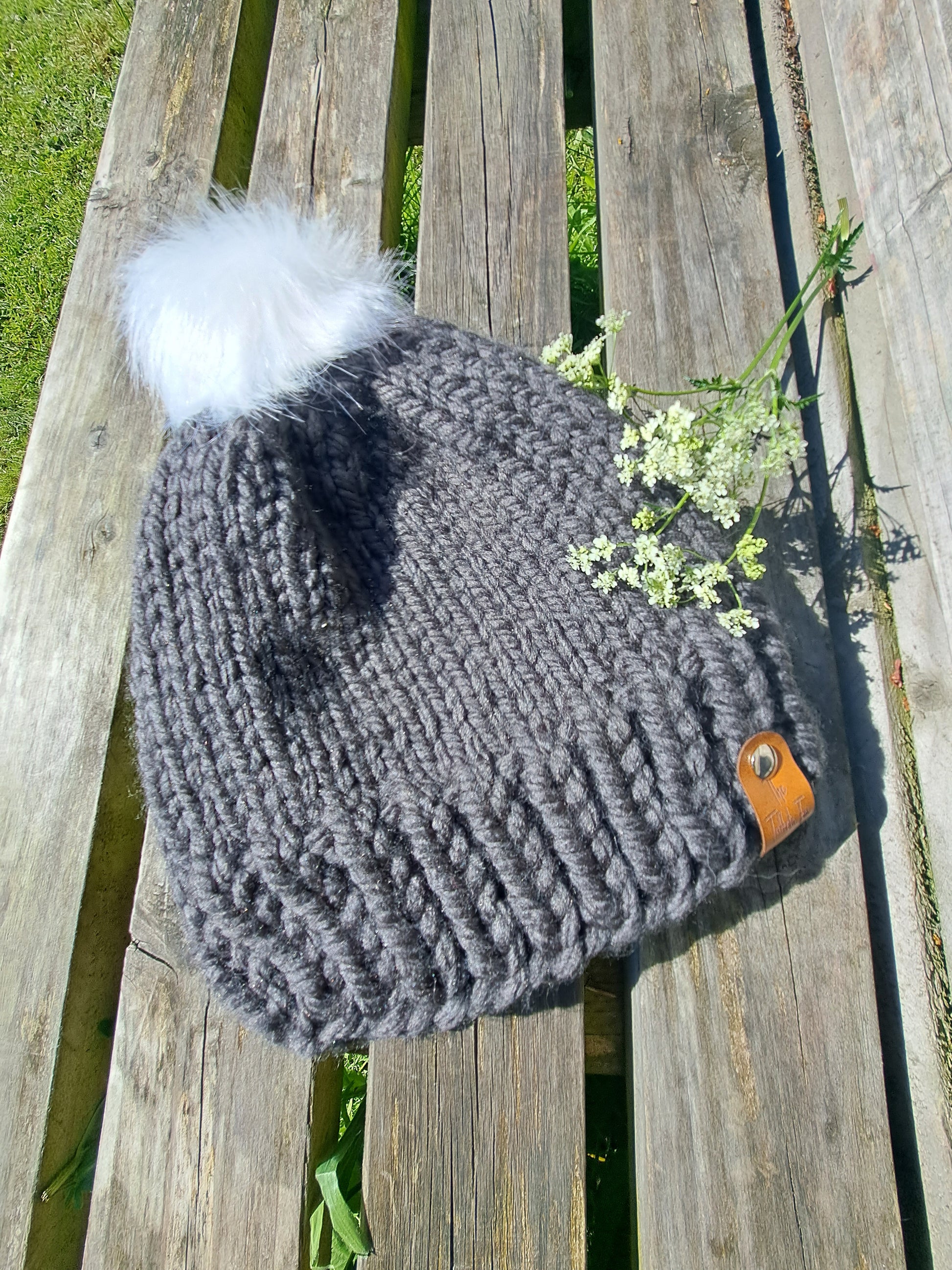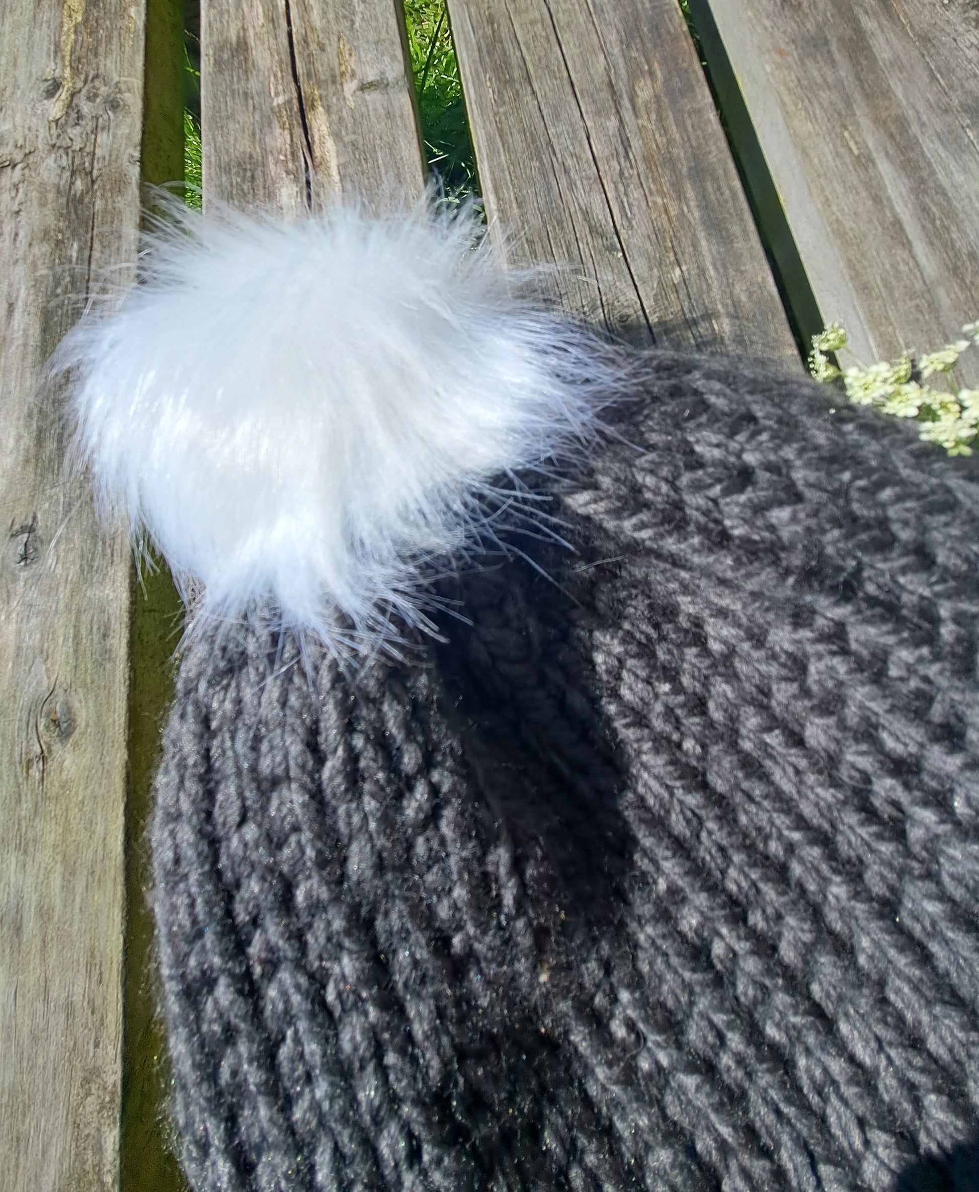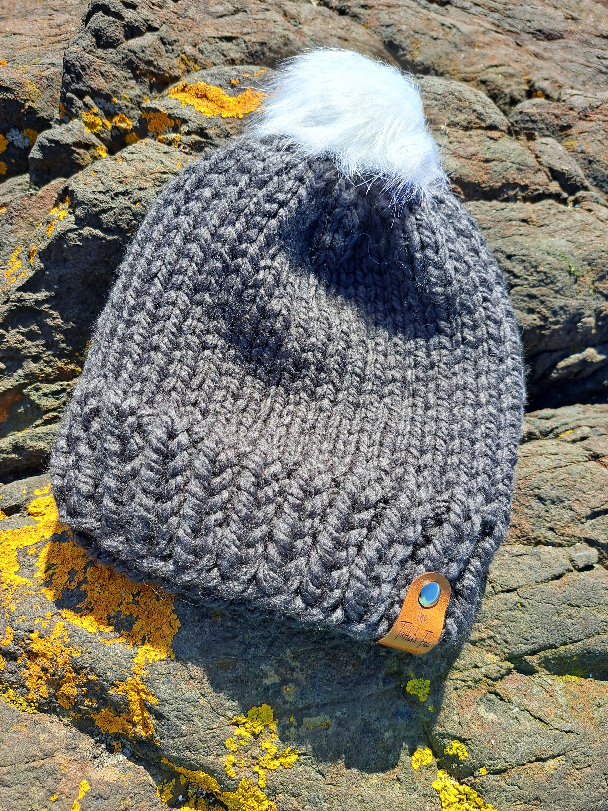 This chunky pompom hat has been handmade by me in my seaside studio.