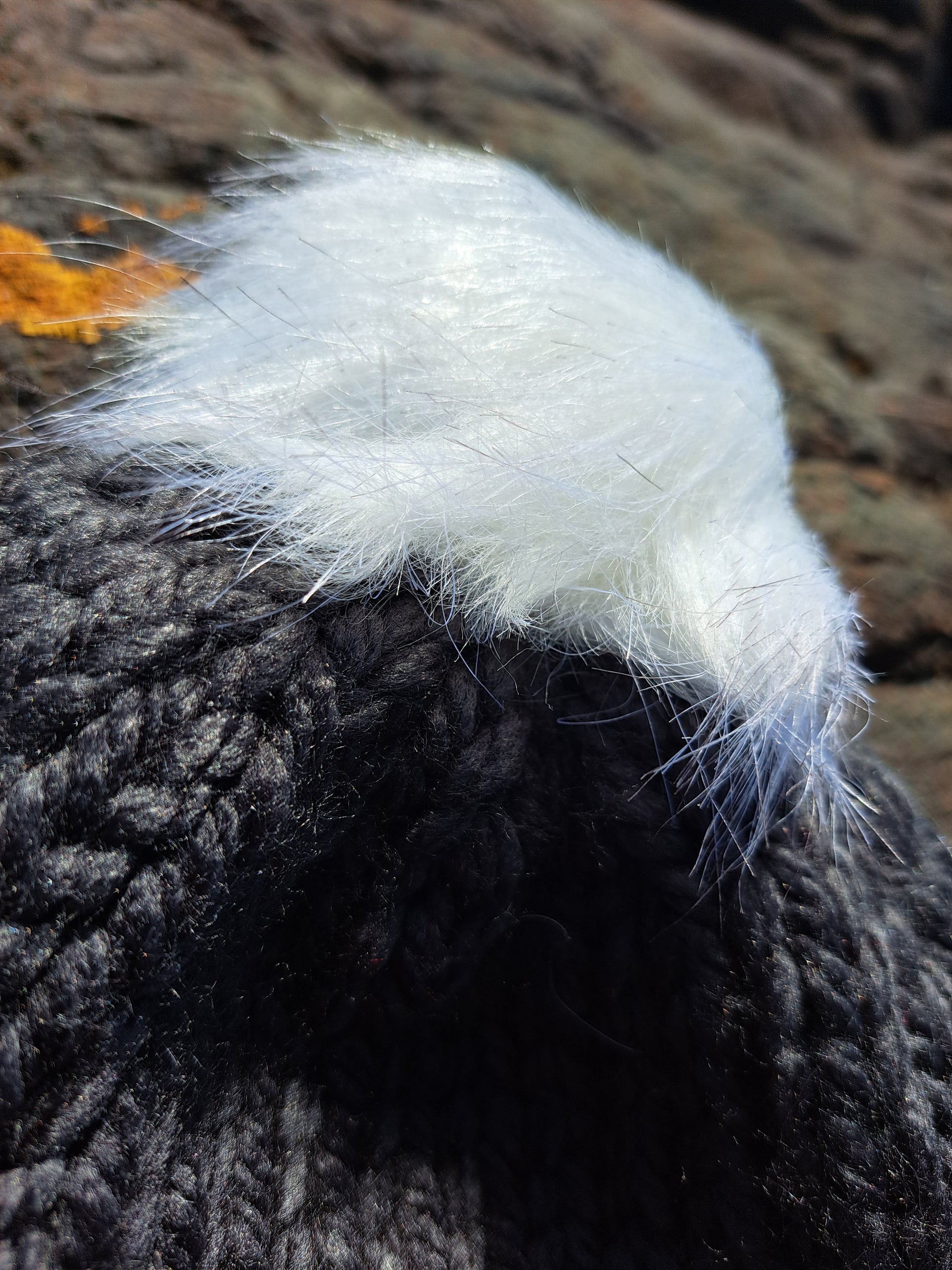 Pompoms are attached via a small elastic loop threaded through the top of the hat and around a small button sewn inside the hat. This can also be removed for washing. (To replace, use a small piece of string or similar threaded through the loop to pull it back through and around the button.)