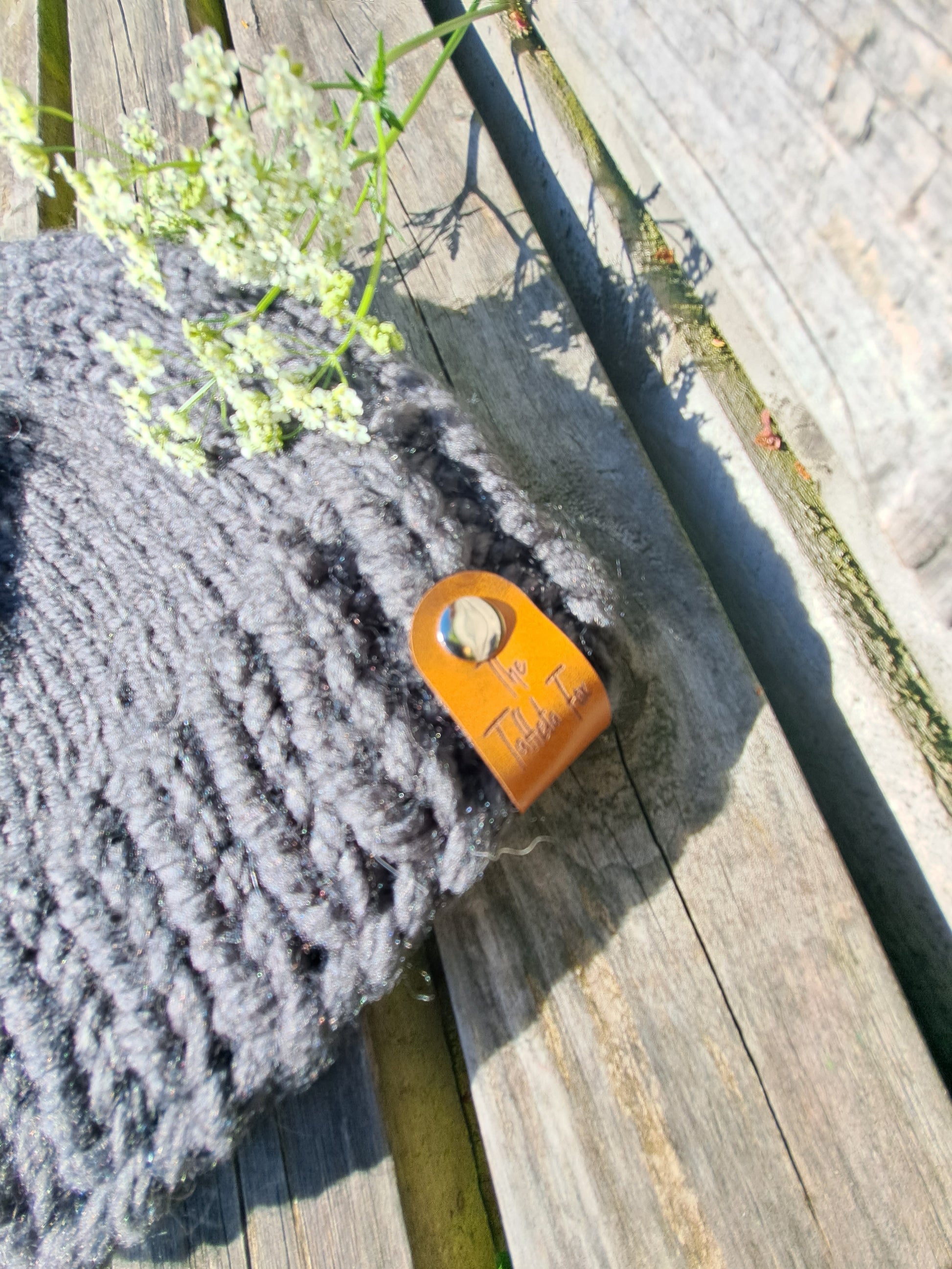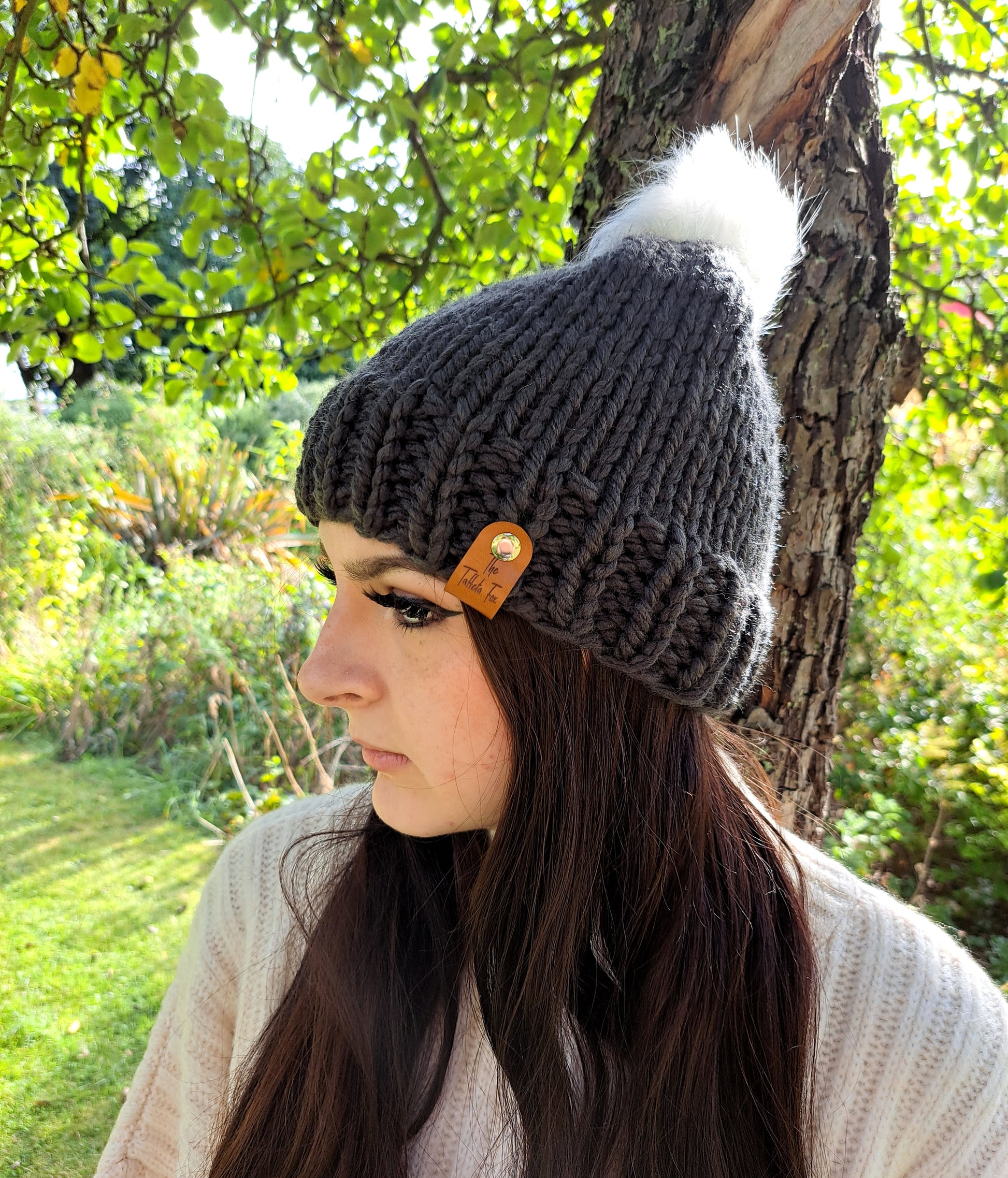 Each hat has a small faux leather 'The Taffeta Fox' tag attached with a silver rivet. This can be unscrewed and removed for washing.
