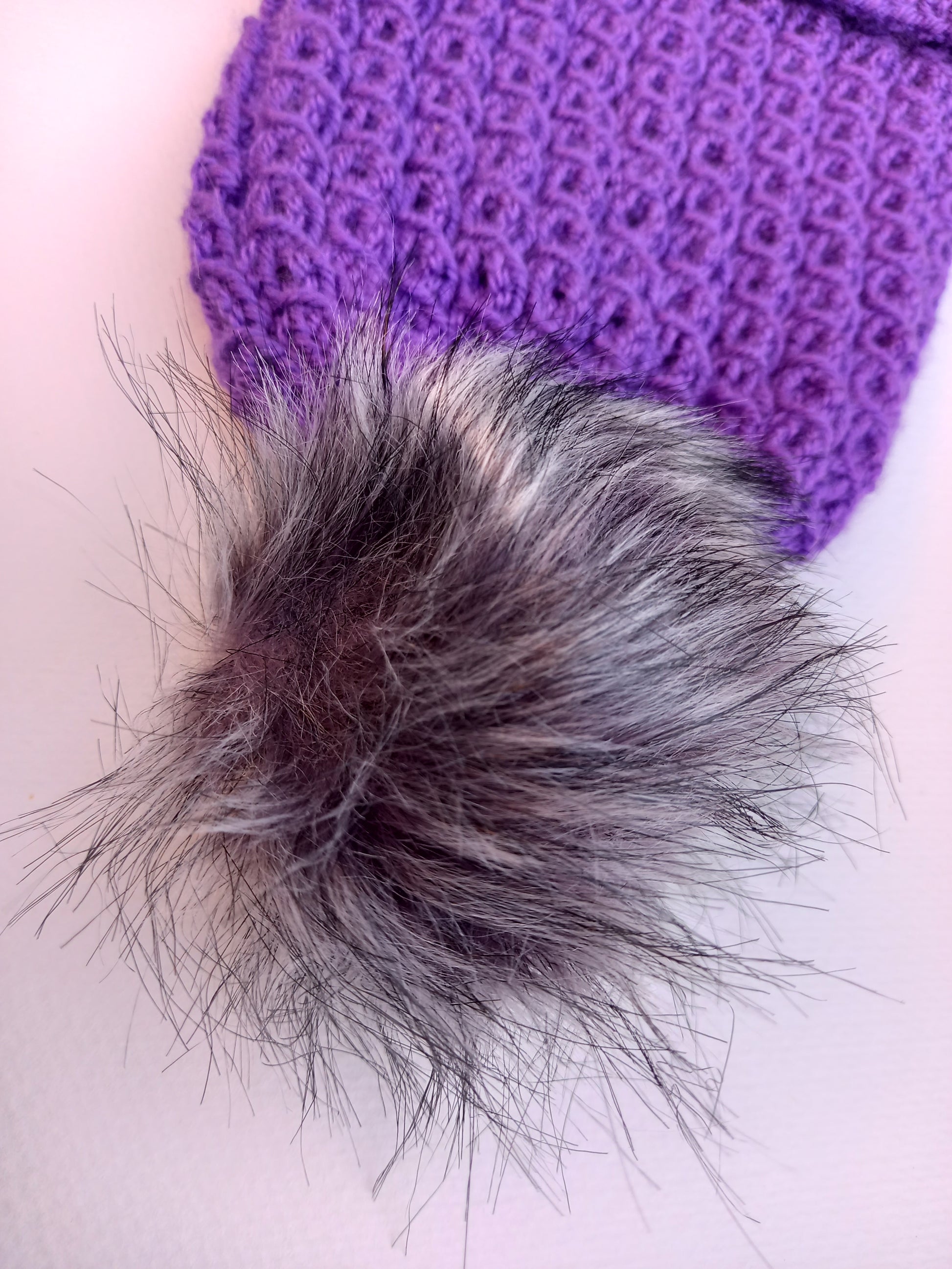 Created using a lovely 100% acrylic double knit yarn this hat has a cosy feel to it, just perfect to keep you warm and stylish during the colder weather.