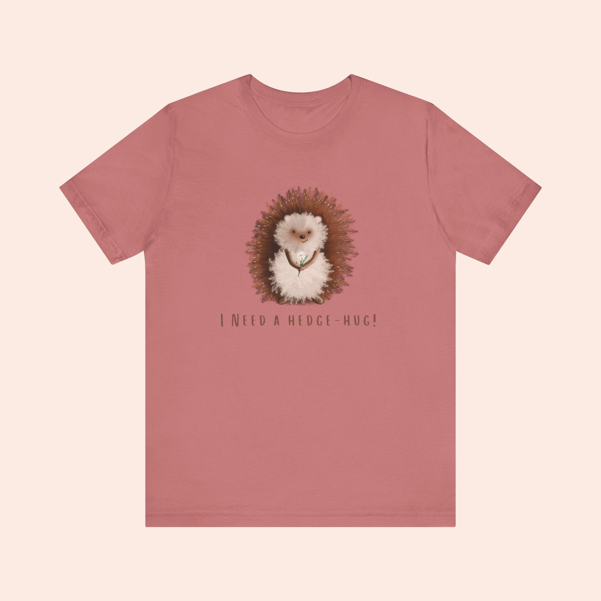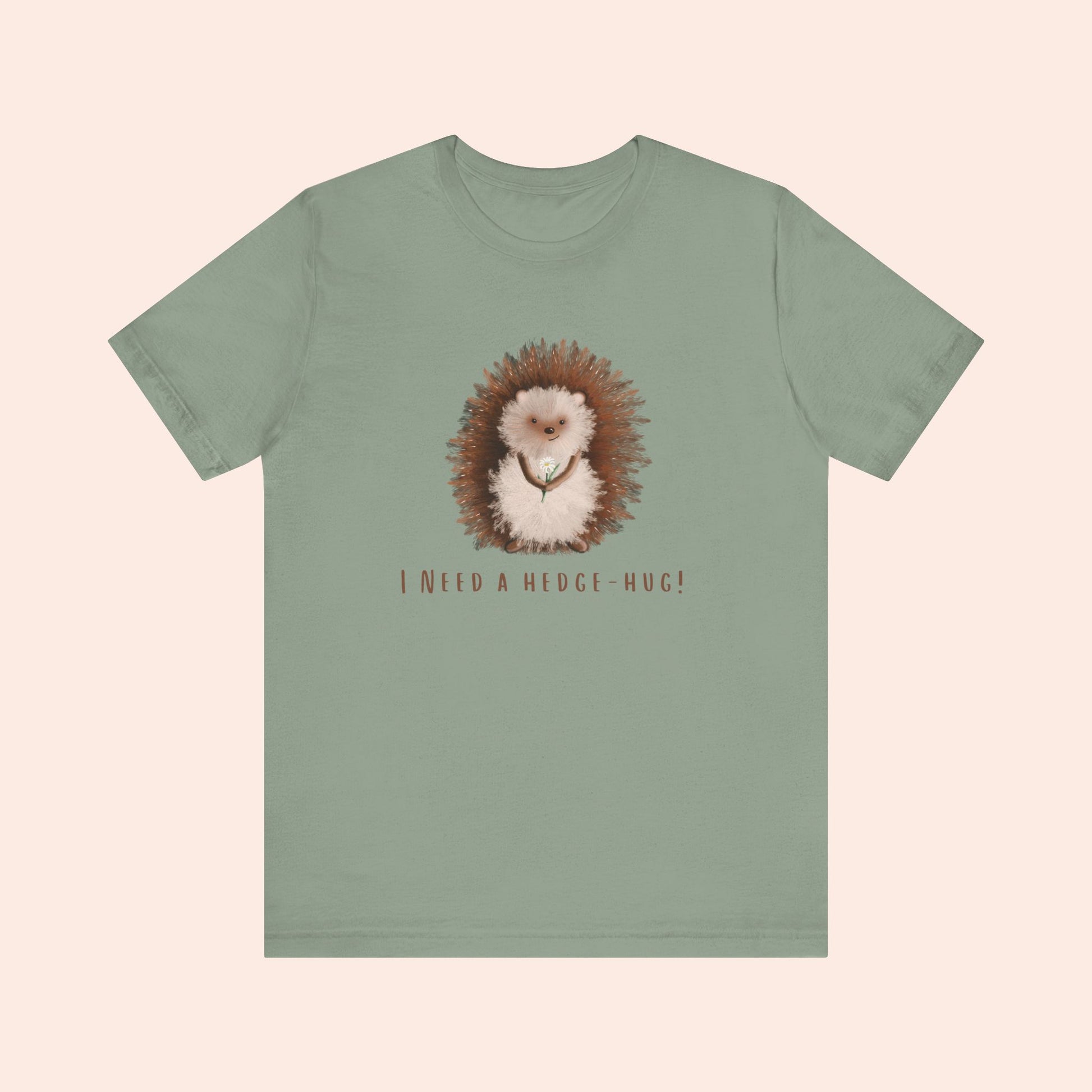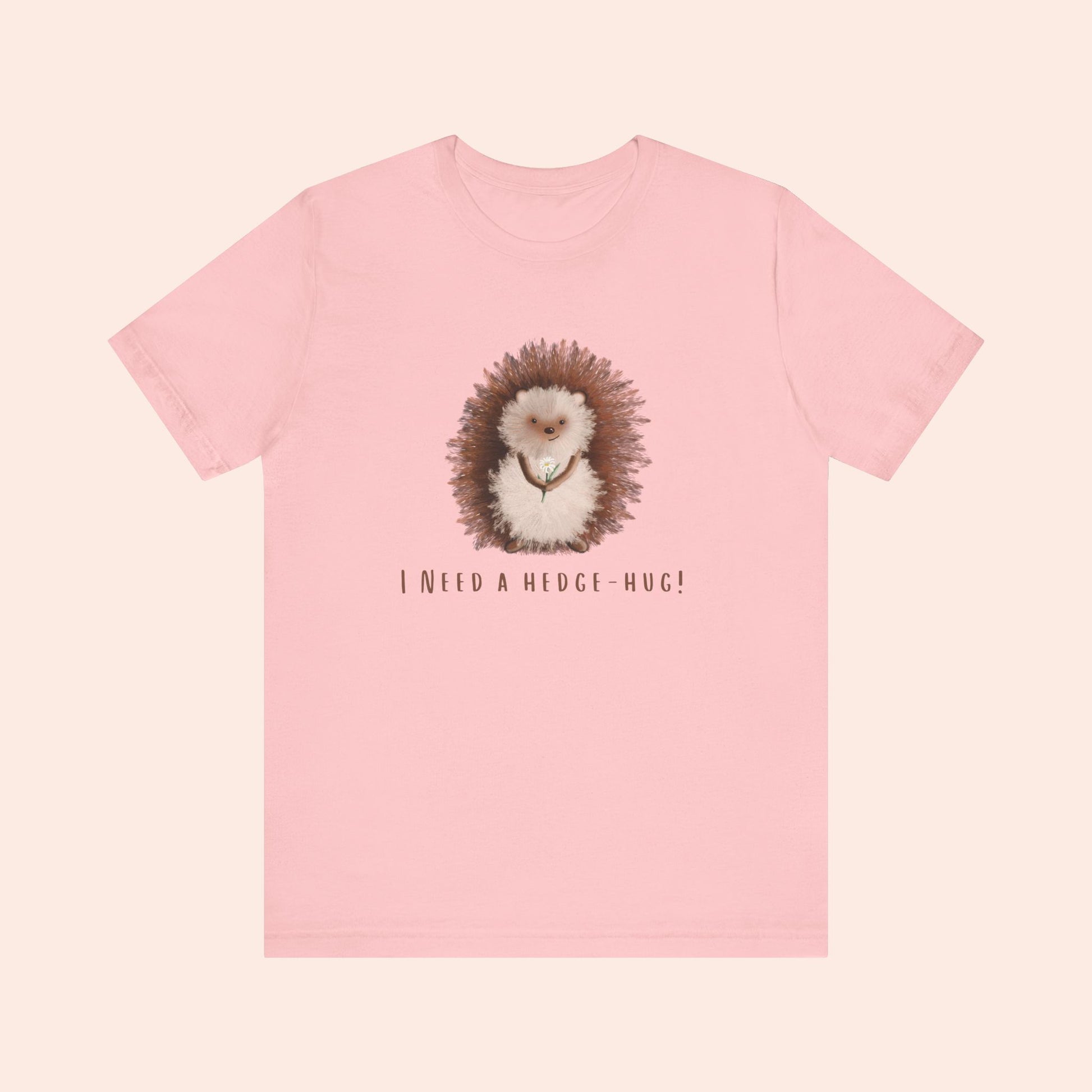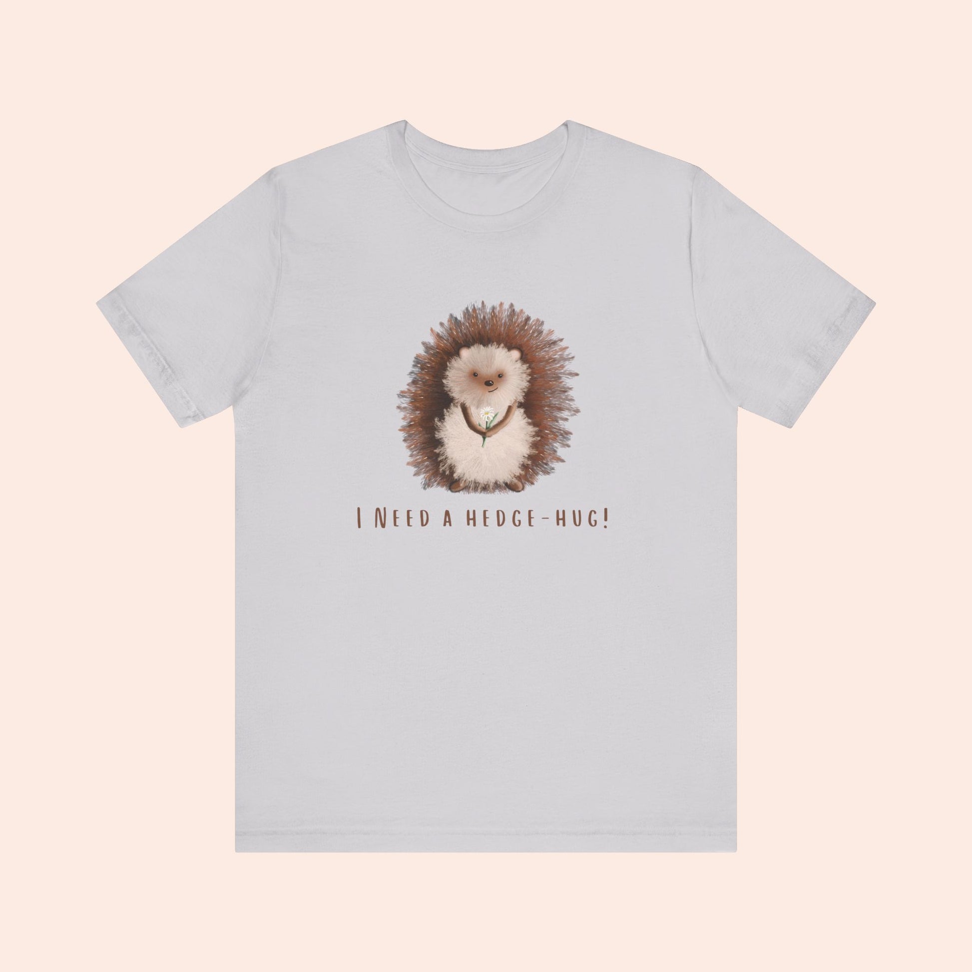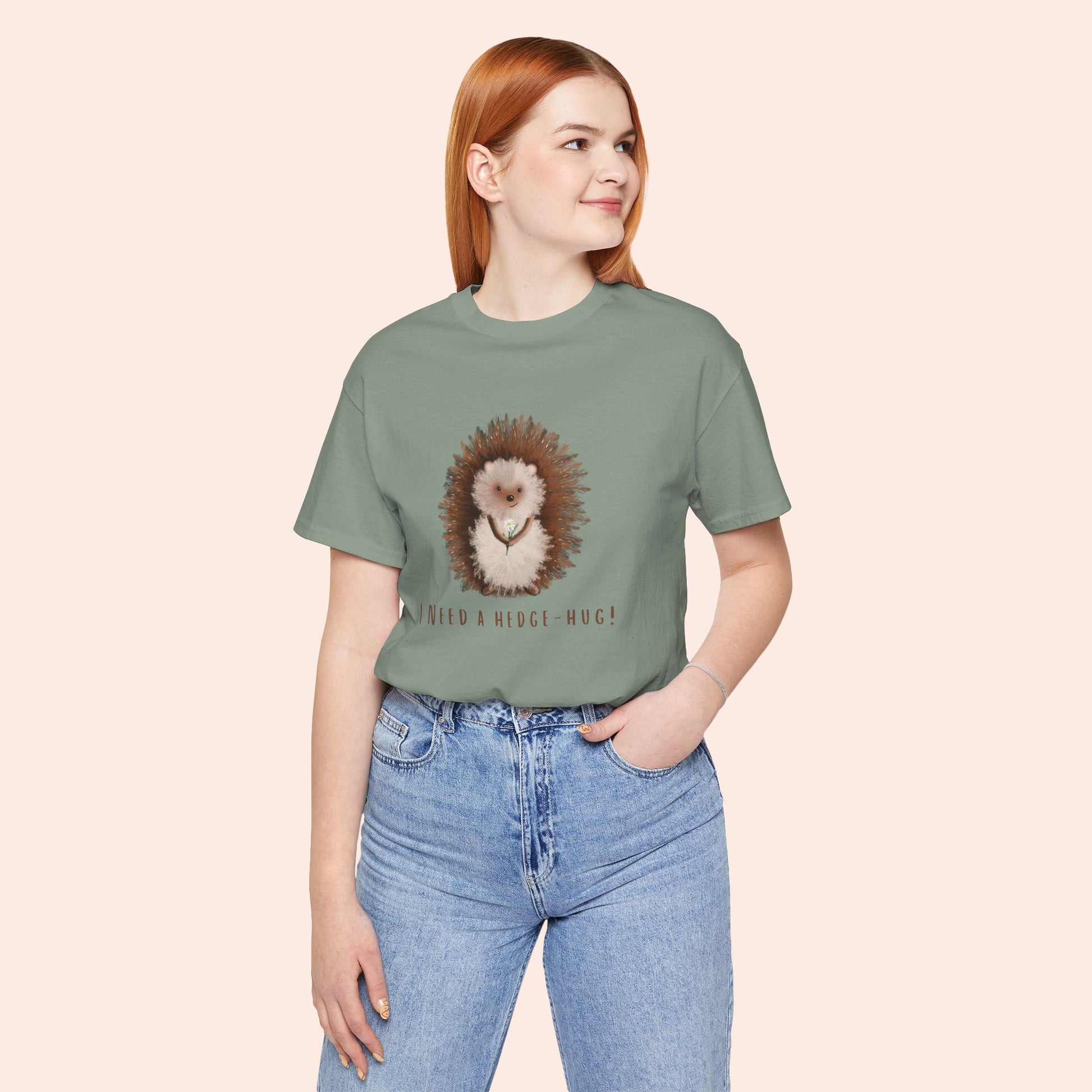 Introducing our new Jersey Short Sleeve Tee for those who love embracing whimsy and playfulness in their wardrobe. This tee features a delightful hedgehog design accompanied by the charming phrase "I Need a Hedge-hug!" Perfect for adding a touch of joy to your daily attire, it’s great for casual hangouts, family gatherings, or even cosy nights in. The soft and breathable fabric ensures comfort while keeping your style effortlessly chic.