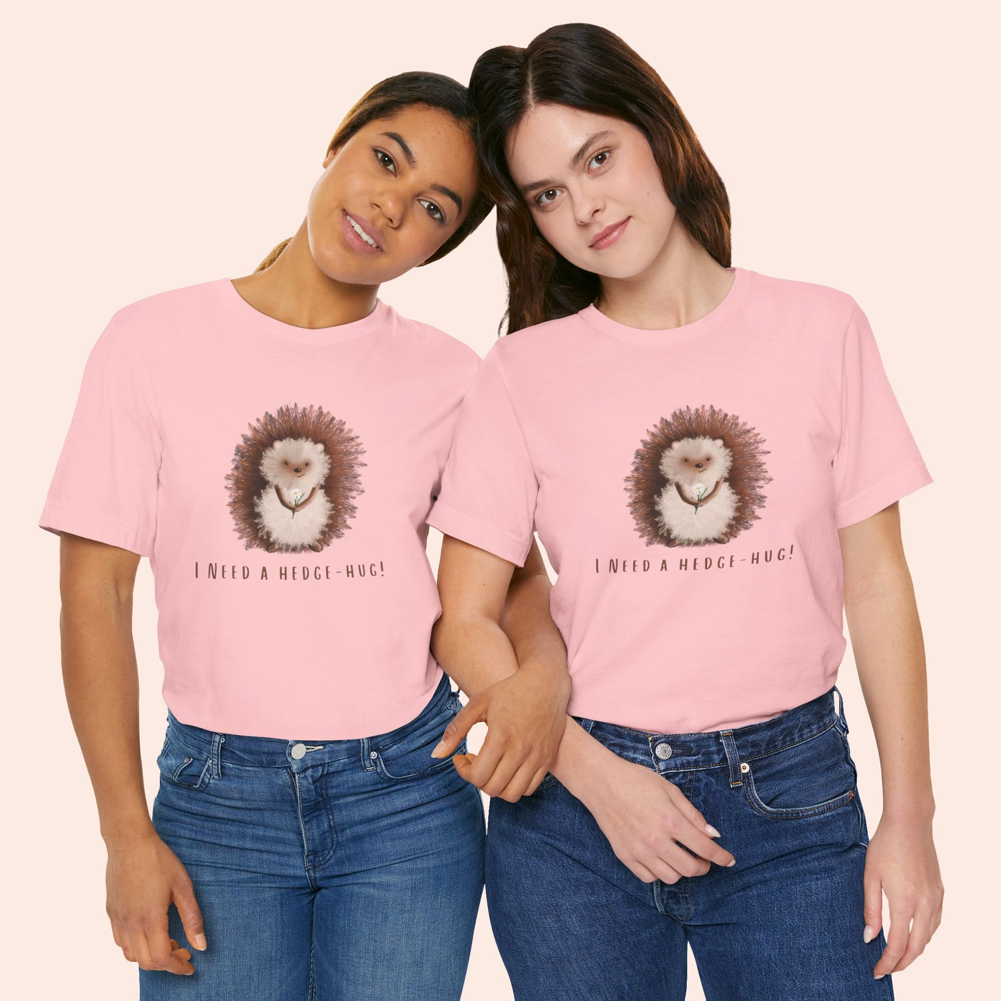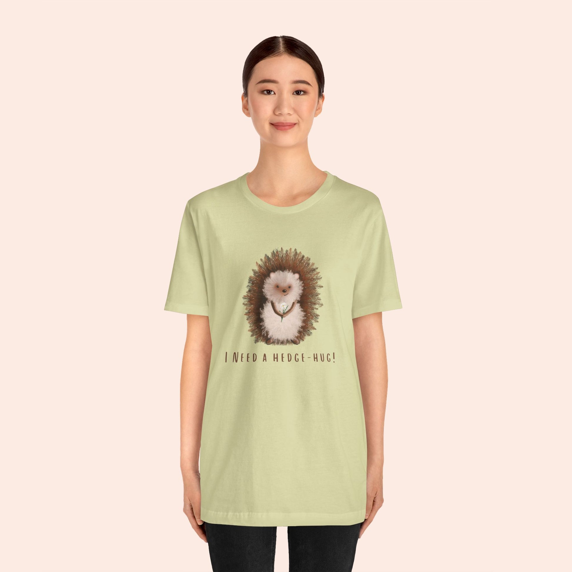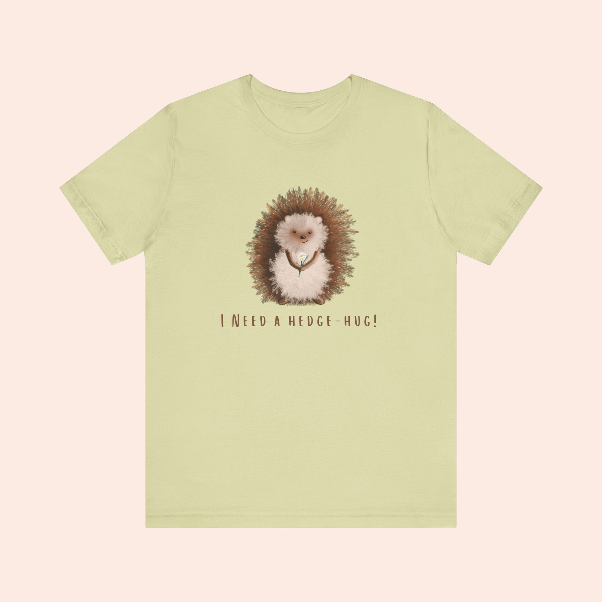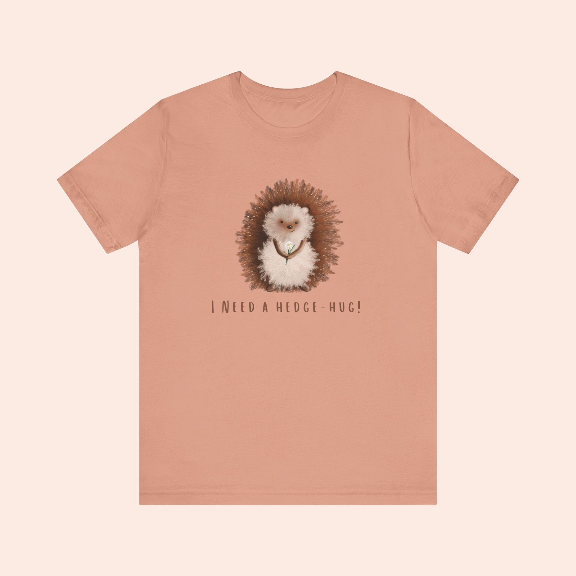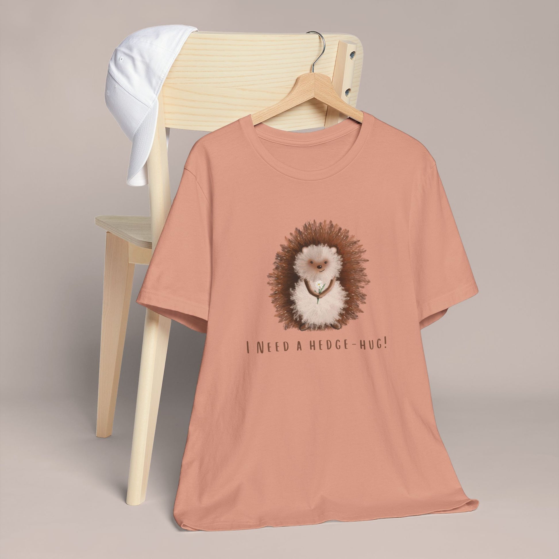 Introducing our new Jersey Short Sleeve Tee for those who love embracing whimsy and playfulness in their wardrobe. This tee features a delightful hedgehog design accompanied by the charming phrase "I Need a Hedge-hug!" Perfect for adding a touch of joy to your daily attire, it’s great for casual hangouts, family gatherings, or even cosy nights in. The soft and breathable fabric ensures comfort while keeping your style effortlessly chic.