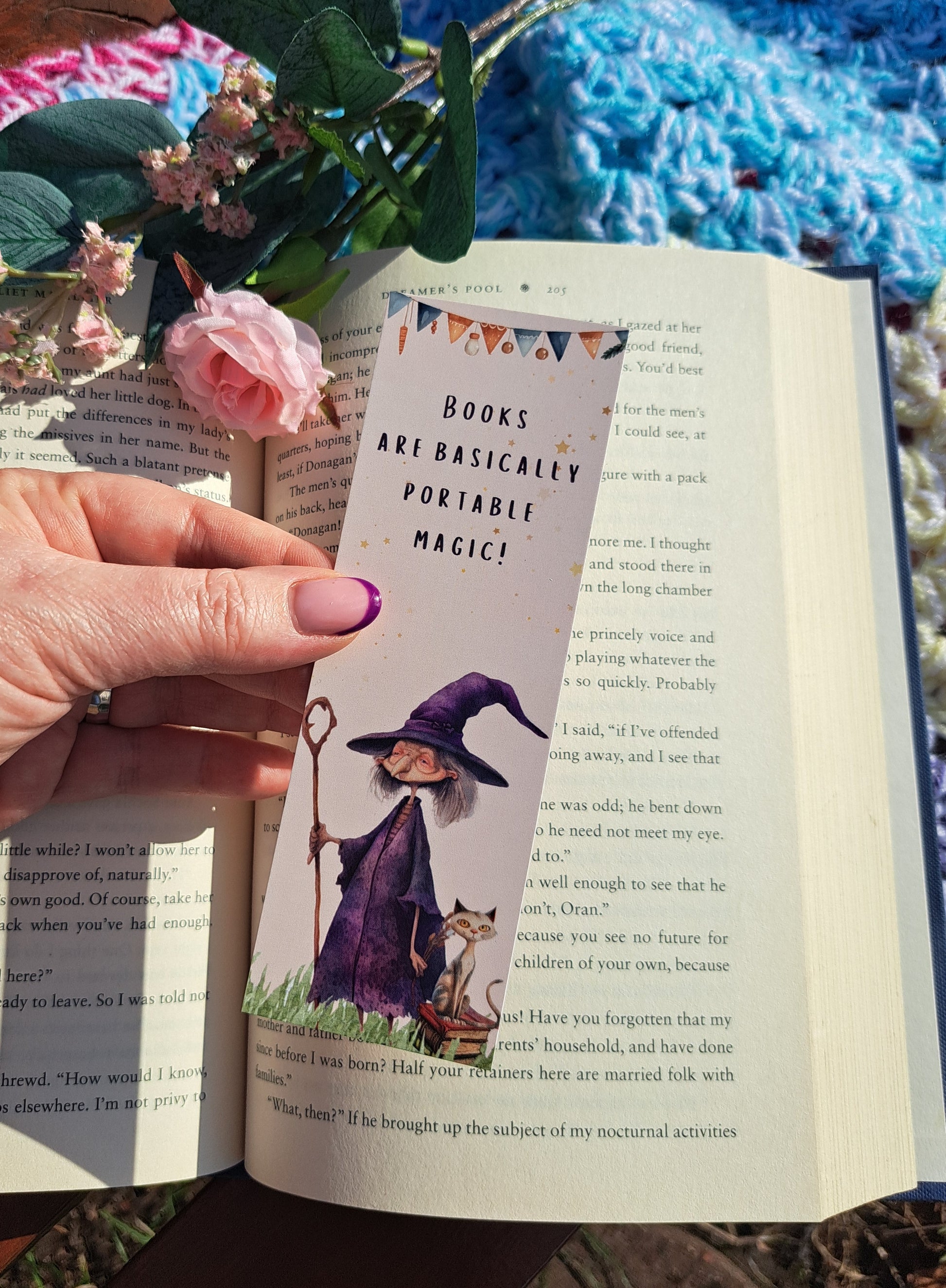 The heartfelt message "Books are Basically Portable Magic" printed on the front adds a touch of charm and serves as a small reminder about the magic and wonder that can be found with the pages of a book. All you have to do is read it!