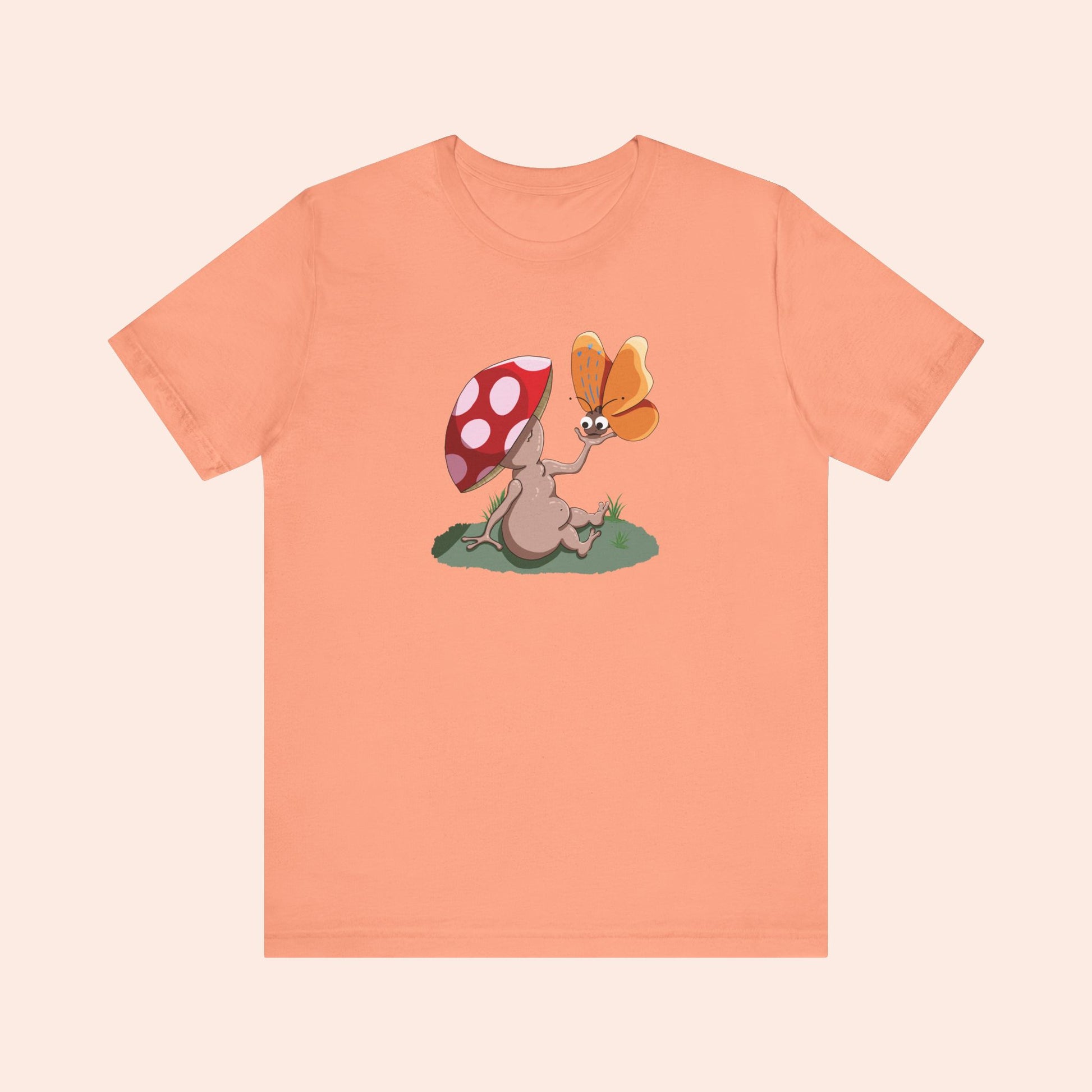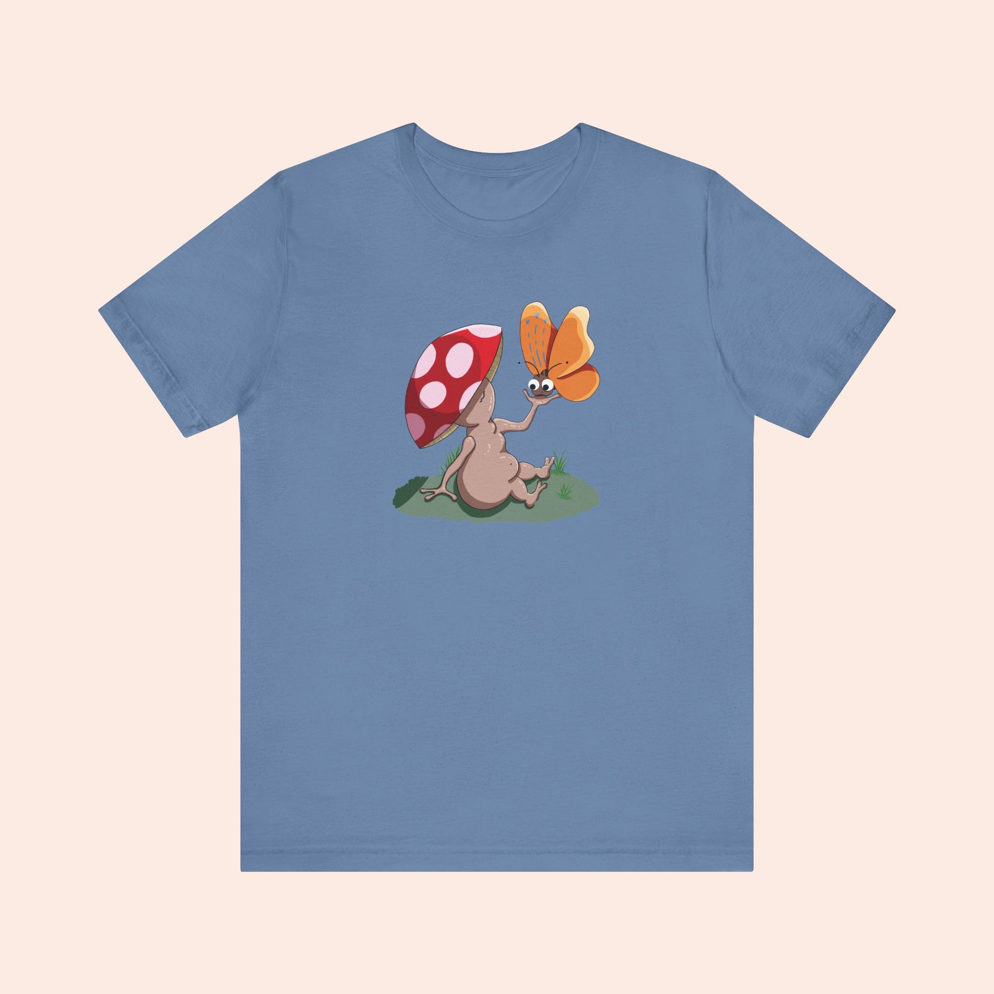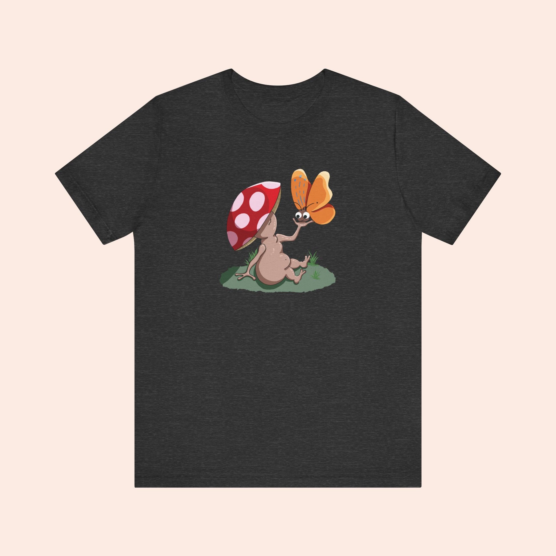Bring a touch of woodland whimsy to your wardrobe with this adorable toadstool and butterfly friends t-shirt! Featuring a kawaii-style design of a chubby little toadstool creature hanging out with his cheerful butterfly friend, this nature-inspired tee is perfect for fans of cute, cottagecore, and fairycore aesthetics.