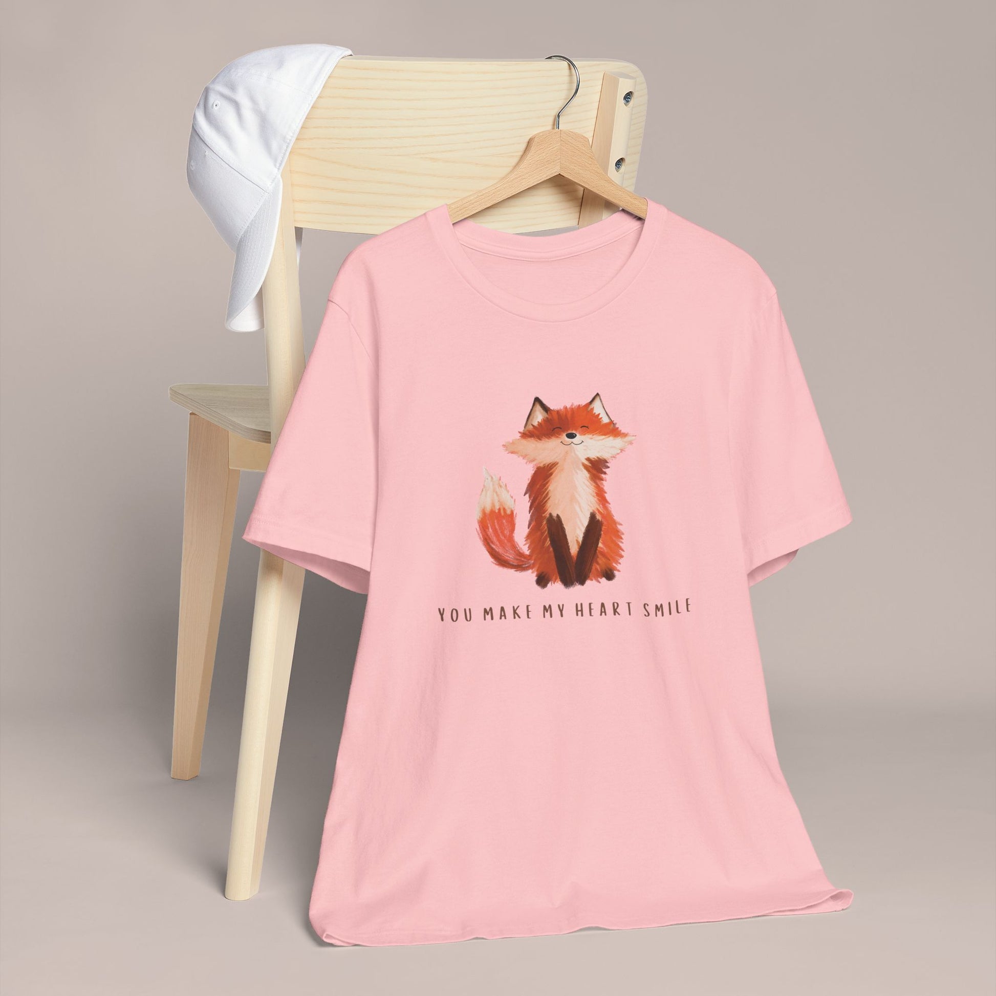 Introducing our delightful Unisex Softstyle T-Shirt, designed to bring a smile to your day! This charming tee features a heartwarming illustration of a fox alongside the sweet message, "You Make My Heart Smile." Perfect for casual outings or relaxing at home, it effortlessly adds a touch of whimsy to your wardrobe. Ideal for animal lovers, friends, and anyone who enjoys spreading joy. This t-shirt makes a wonderful gift for birthdays, anniversaries, or just because you want to cheer someone up! Wear it during cosy gatherings or fun outings, and let the good vibes flow!
